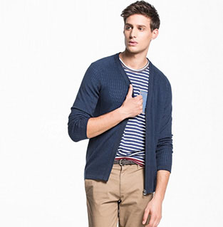 男雙層網(wǎng)眼純棉V領(lǐng)針織開(kāi)衫
